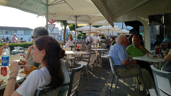 La Cafetería Plaza cuenta con una agradable terraza donde los clientes pueden disfrutar de su desayuno o merienda al aire libre, un punto a favor en días soleados. Este espacio es perfecto para relajarse y disfrutar de la atmósfera vibrante de Betanzos, un lugar donde la historia y la modernidad se entrelazan. A pesar de las críticas sobre el tiempo de espera en el servicio, muchos coinciden en que el ambiente compensa la espera. ¡Y qué mejor que disfrutar de un café con una vista encantadora!